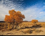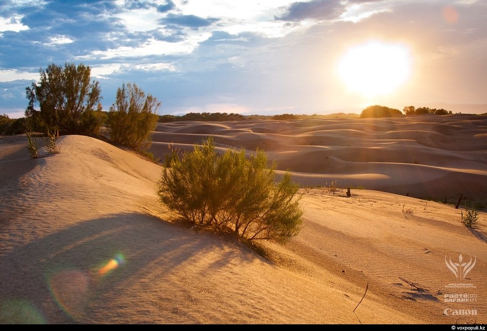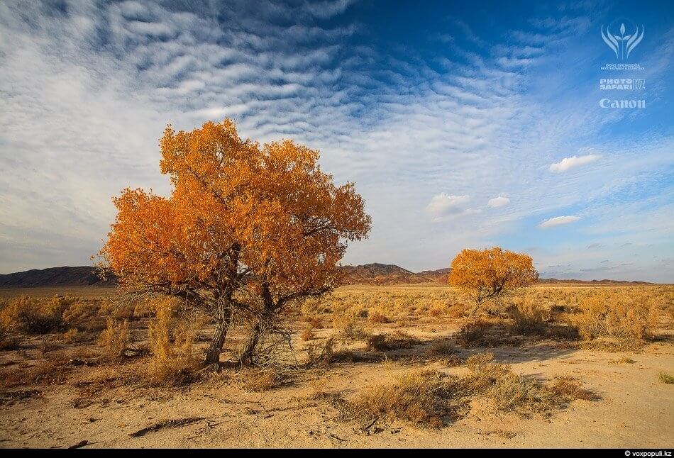 700 year old tree is between Willow Singing dunes and mountains of Aktau. It nourishes the underground spring, which forms a lake next to a tree.