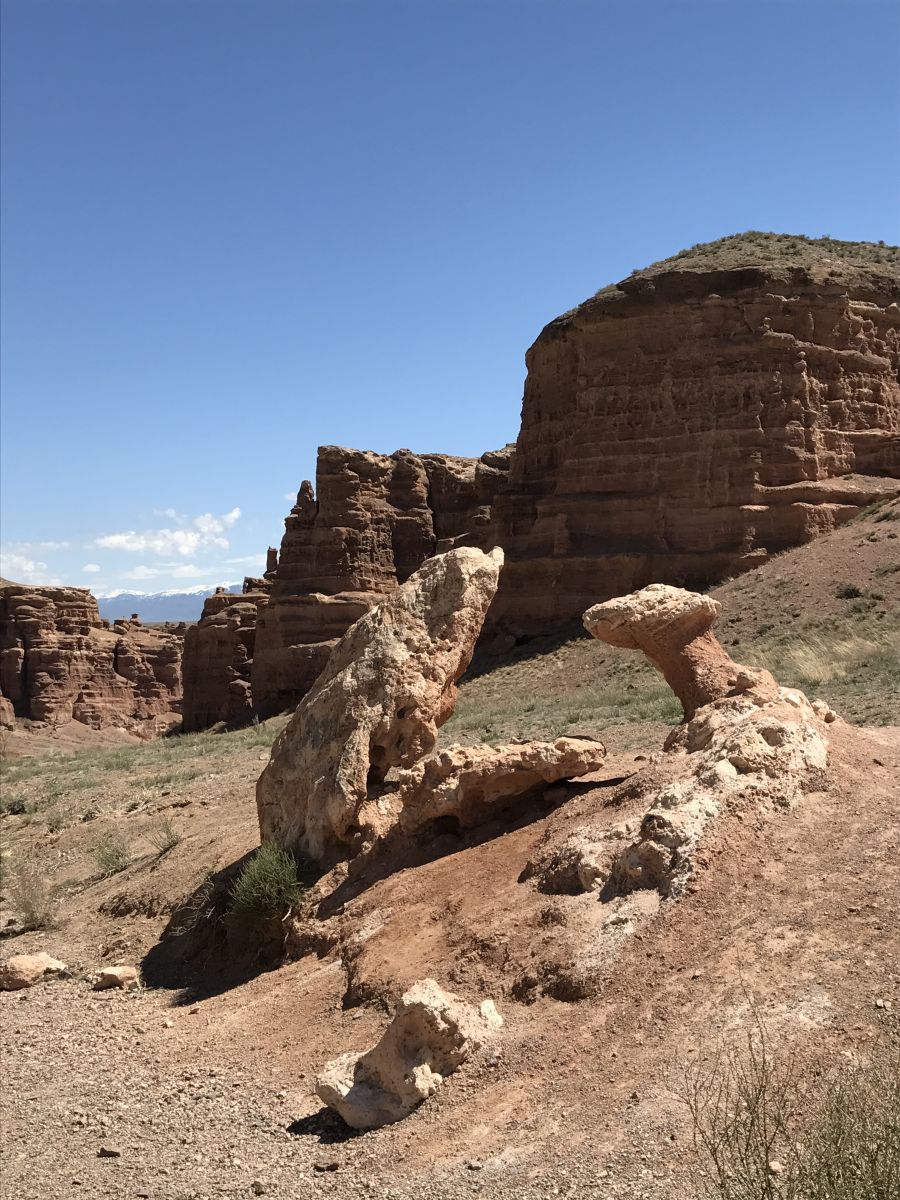 You go down deep into the canyon on the SUV, so all of walking way, you will drive by car, stopping and taking amazing pictures. At the end point you go down to the river Charyn and took a picnic on the beach, among the prehistoric ash tree. You can also order a picnic, barbecues and shashlyk in our company, discuss the menu in advance with our staff. Or you can take everything you need with you.